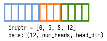 indptr array用來記錄一個data tensor裡不同長度seq的訊息(indptr[i+1]-indptr[i] is the sequence length of request i)。