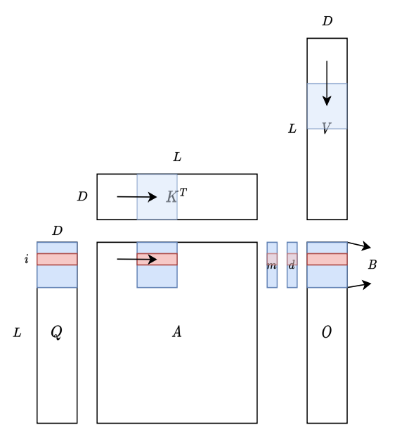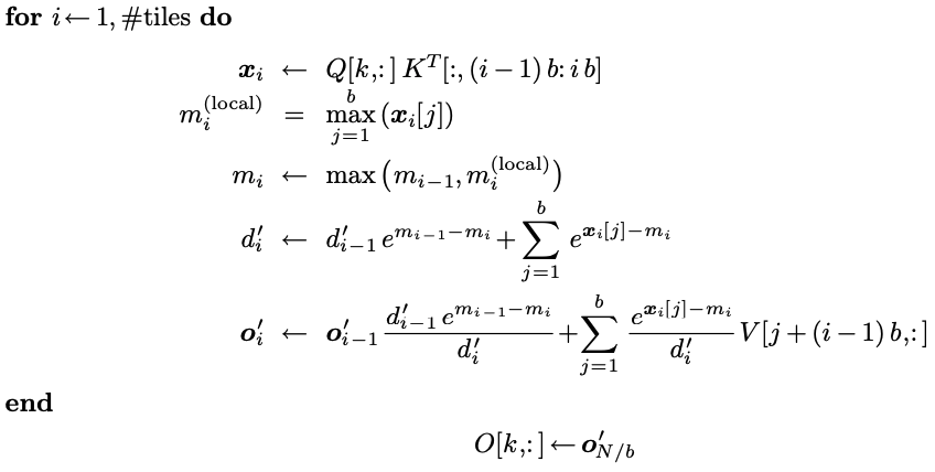 這就是flash attention數學算法,接下來再運用tiling優化kernel就是完整的flash attention了。
